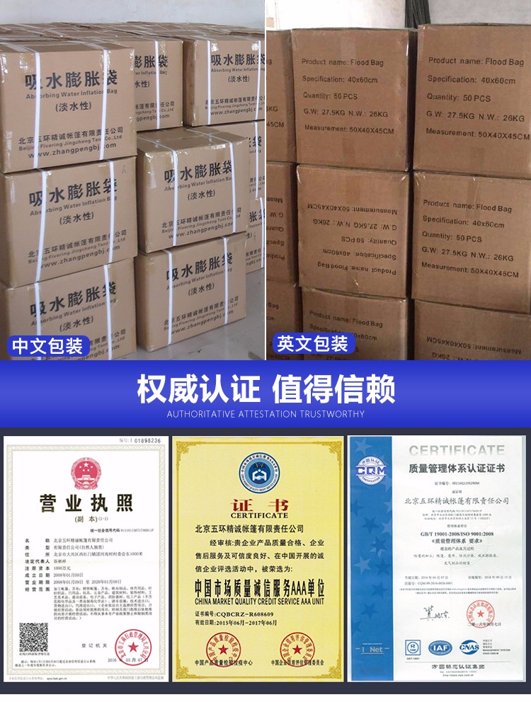 用(yòng)于防汛堤坝的临时加高、防水围墙的构筑、放坡防冲、水库的管涌可(kě)暗洞的堵塞;还可(kě)用(yòng)于庭院、沟塘、耕地农田、地铁、隧道、矿井、學(xué)校、银行等处的挡水和排水